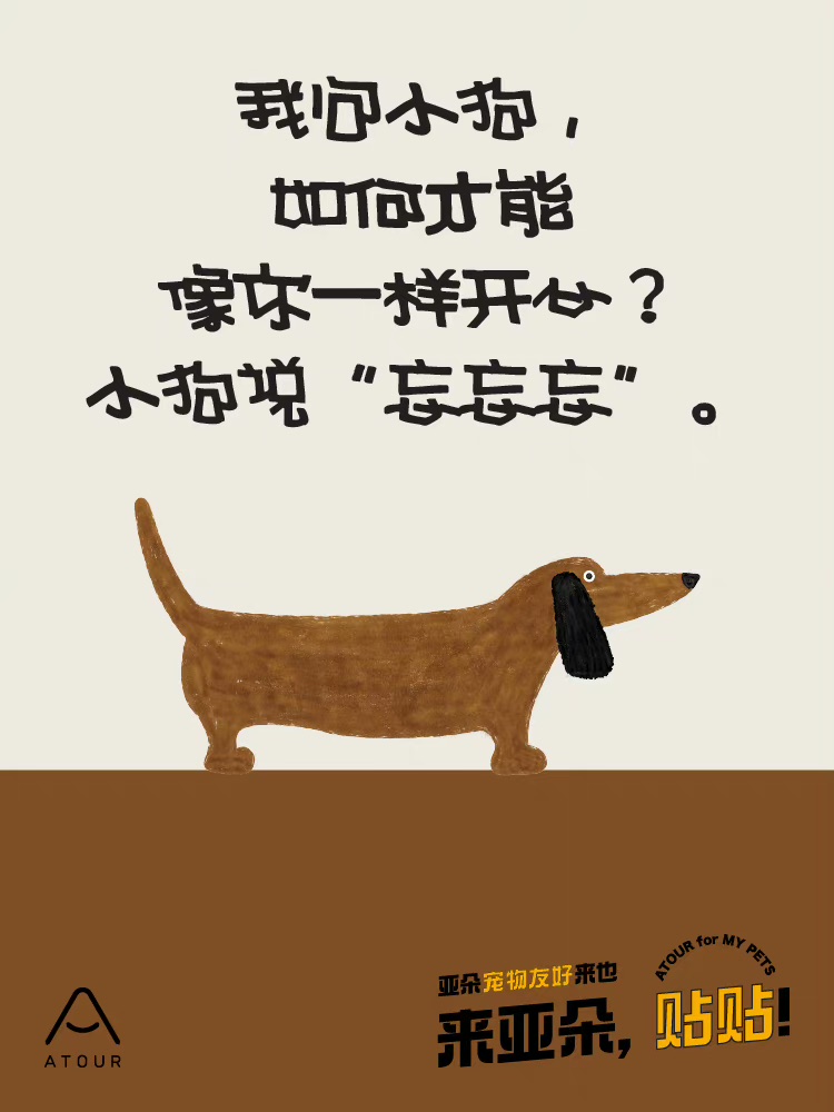 此外,亚朵还同步发布了一组宠物主题海报,以有趣的文案唤起铲屎官们的情感共鸣。海报设计,平面设计,萌宠设计,创意设计